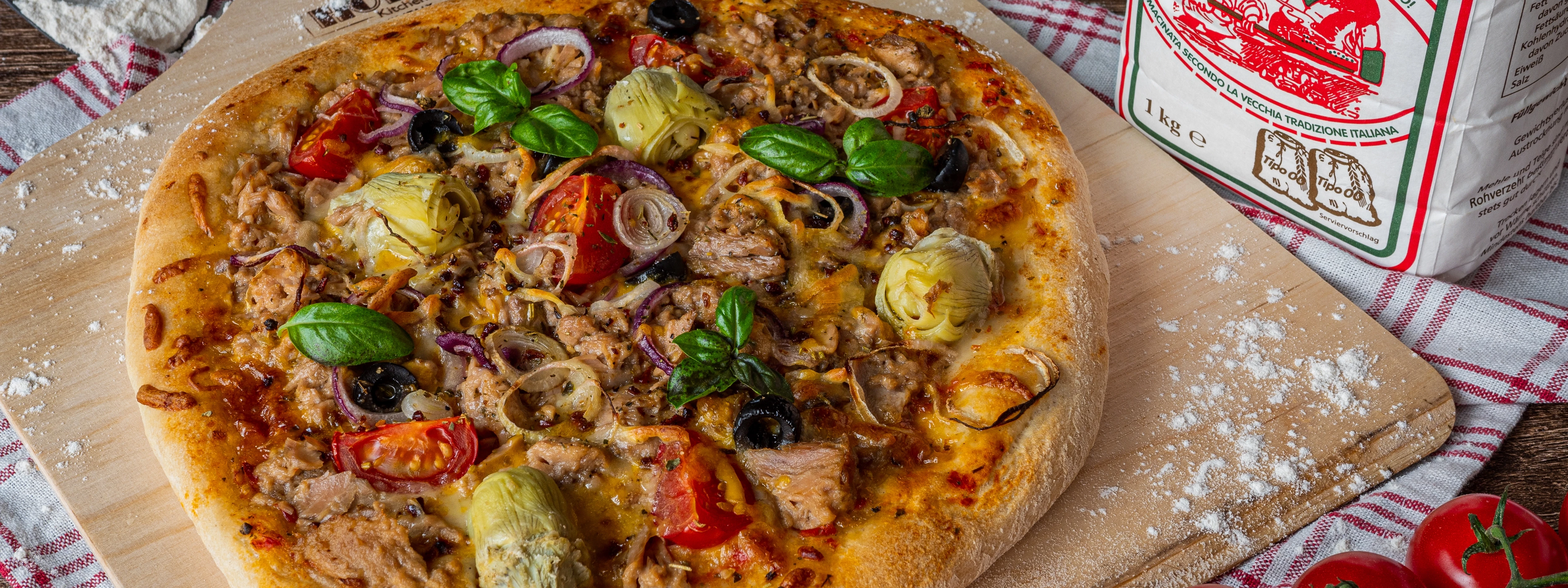 Knuspriger und goldbrauner Rand. Mit diesem Teig gelingt die perfekte Pizza. Auch im Haushaltsbackofen.
